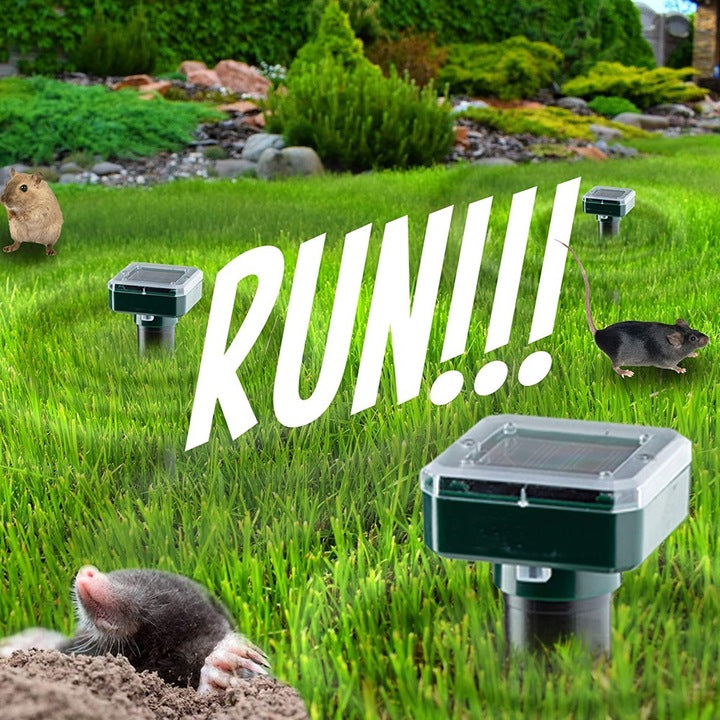 Acest dispozitiv solar este o modalitate eficienta de a speria toate rozatoarele si insectele nepoftite din gradina ta. Aparatul nu omoara daunatorii, doar ii obliga sa paraseasca zona in care opereaza. Prin urmare, este o alternativa ideala la masurile drastice de a face fata oaspetilor neinvitati.