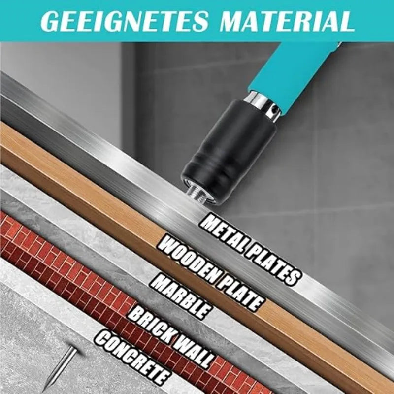 Kit profesional pentru fixarea rapidă și precisă a cuielor și niturilor în lemn, perete, beton sau alte suprafețe dure. Pistolul pneumatic de 30 cm, cu calibru 7.3 cm, oferă putere ridicată, control și eficiență maximă. Inclus: ochelari de protecție, perie pentru întreținere și cutie de transport rezistentă.